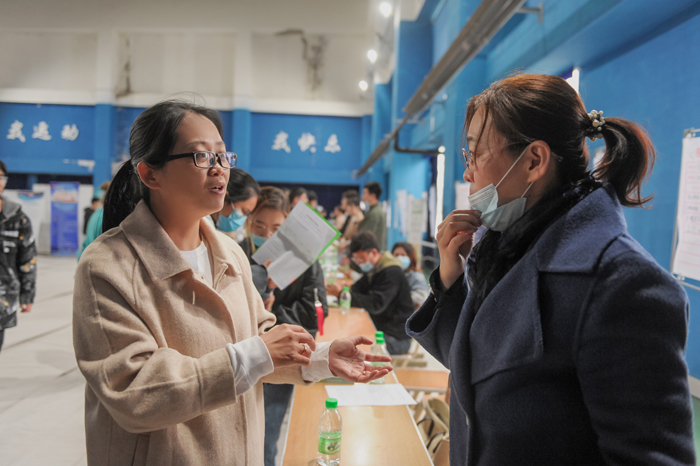 招聘期间,校招生就业处杨艳秋处长、王艳超副处长、工程学院党委副书记宋清萍、土木水利学院党委副书记赵玥来到招现场对求职学生进行现场指导,鼓励同学们充分了解参会单位,勇敢的投递自己的简历,争取在这次招聘会上找到适合自己的岗位。