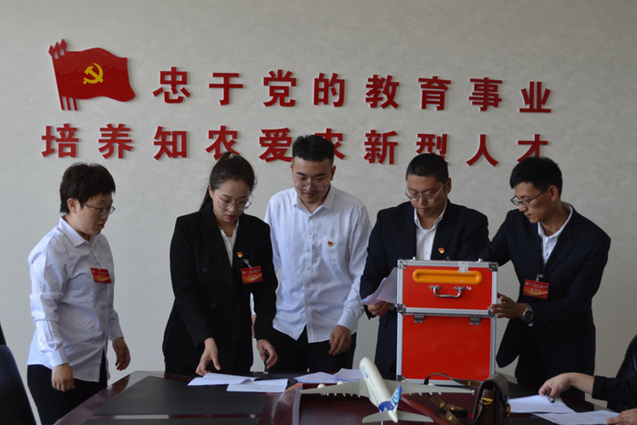 大会期间,出席会议的全体党员,以高度的责任感、主人翁的态度,认真听取张昆同志所做的党委工作报告。经过充分民主讨论,全体党员一致通过了上届党委工作报告。随后,受大会委托,衣淑娟同志向大会宣布并解读选举办法;马永财同志宣读了学校党委组织部对于此次党委换届的批复,批准新一届党委委员会由7人组成。同时,宣布并介绍按照应选人数至少多20%的规定而确定的9名候选人名单及个人简介。最后,大会严格按照《中国共产党章程》、《中国共产党基层组织选举工作暂行条例》、《中国共产党普通高等学校基层组织工作条例》、《中国共产党党支部工作条例(试行)》等文件相关规定和流程,经分发选票、填写选票、投票等环节,并由监票人监督、唱票和计票人统计得票,依据选票结果,选举产生了新一届党委委员。