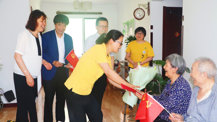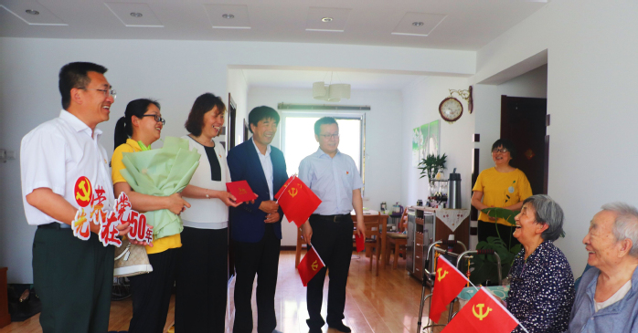 6月16日,学院党委班子一行5人走访慰问工程学院50岁党龄的退休老教师、老党员王金娇,为她送去学校党委的关怀、学院党委的问候。当天,恰逢老人入党政治生日。