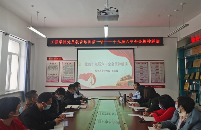 11月21日,学院党委组织全体师生党员召开专题党课学习会。邀请学校思修与政策教研室主任张方成老师解读并领学党的十九届六中全会精神。