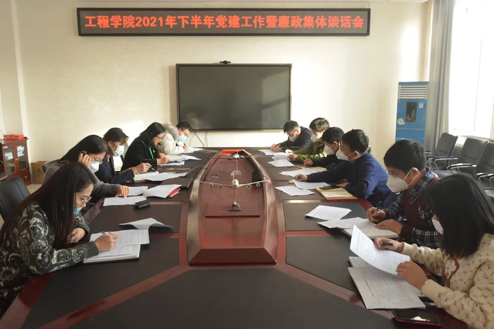 11月22日,学院召开2021年下半年党建工作暨廉政集体谈话会,院长衣淑娟、副书记宋清萍、党支部书记及学院中层管理人员参加了会议。