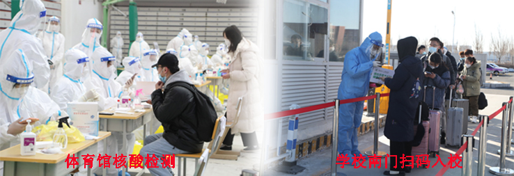 学生返校期间,学校南门开通6条学生入校专用通道,在体育馆设置15条核酸检测通道,按照返校流程,设立“入校审核”“核酸检测”“行李存取”“隔离等待”“物资保障”五个工作组。学生按要求完成“一核二查三存四扫五测六检七取八住”流程。即在南门入口处核验学生龙江健康码和通信大数据行程码并反扫“八一农大APP”校园电子通行码,检查学生48小时内的核酸检测阴性证明。核验完成后,学生到体育馆前办理寄存行李手续,体温检测正常后进入体育馆进行“应检尽检”微信小程序扫码,持身份证进行核酸检测。完成检测后,学生领取行李入住寝室等待核酸检测结果。