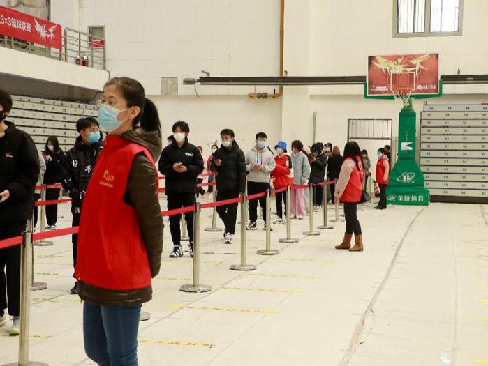 3月24日,教师第二党支部组成志愿服务队,前往校体育馆核酸检测点协助开展师生核酸检测采样工作。党员分工合作,开展场地引导、秩序维护、操作指导、劝导离场等工作,保证整个核酸检测工作有序、有效进行。