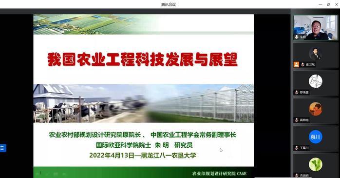 为拓展学术视野,促进学术交流,提高师生的科研能力,营造校园疫情防控封闭管理期间的学术氛围。4月13日,工程学院特别邀请农业农村部规划设计研究院原院长朱明研究员作《我国农业工程科技发展与展望》主题报告。学院相关专业教师、研究生导师以及研究生约200余人通过线上形式聆听报告会,会议由衣淑娟院长主持。