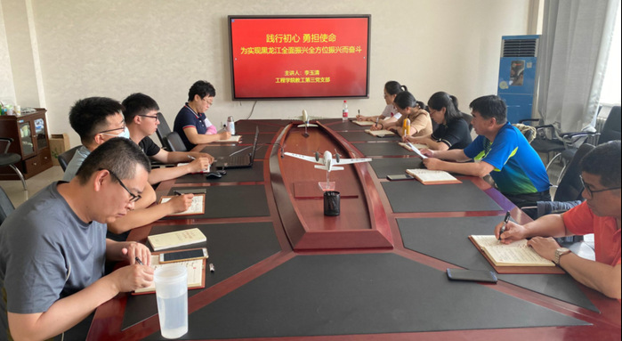 6月17日,教工第三党支部召开以“践行初心,勇担使命,为实现黑龙江全面振兴全方位振兴而奋斗”为主题的省十三次党代会专题党课。全体党员通过线上线下方式参加学习,教工第三党支部书记李玉清同志主讲。