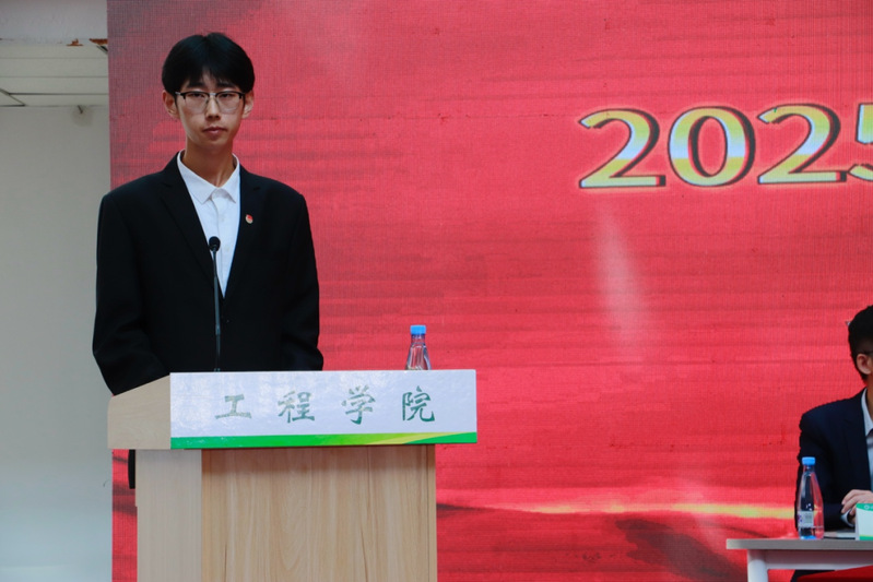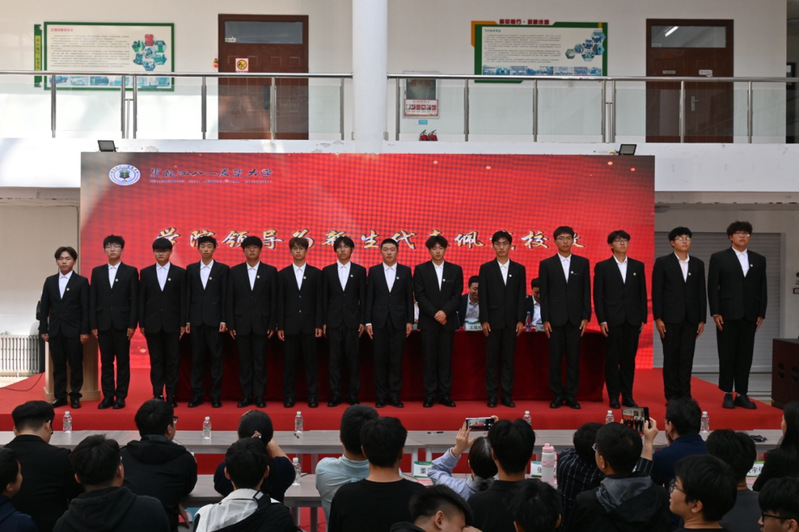 学院领导为新生代表佩戴校徽,这一庄重的仪式标志着新生们正式成为工程学院大家庭的一员。随后,全体新生庄严宣誓,铿锵有力的誓言展现出他们立志成为知农爱农、服务社会的专业人才,以奋斗书写青春,为民族复兴贡献力量的决心。