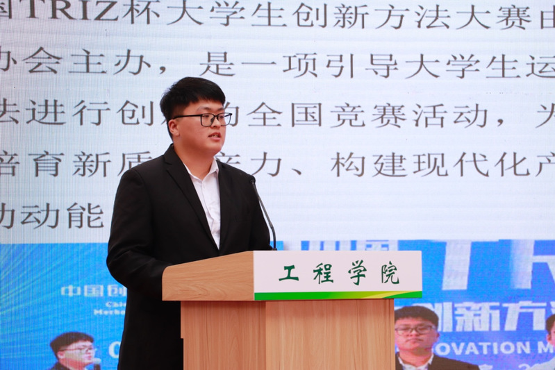 在授旗仪式环节,学院领导为各学生科技社团代表授旗,勉励大家积极投身科技实践,争创佳绩。随后,2023级农业工程博士研究生王淞作为科研骨干代表,分享了其在“基于TRIZ理论的带式玉米高速精量播种智能监控系统设计”项目中的科研经验与心得体会。