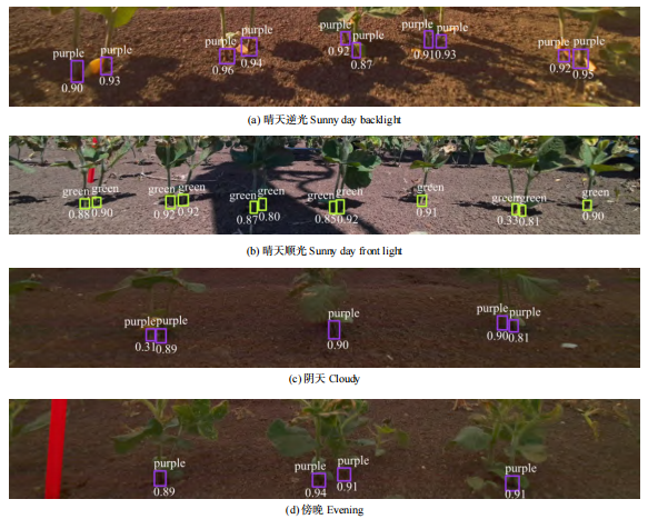 该论文为实现田间杂交大豆表型一致性信息化检测,基于自主研发的自走式大豆表型信息采集平台,开展杂交大豆苗期胚轴颜色检测研究。在系统对比主流目标检测模型基础上,提出了在YOLOv7网络中引入CARAFE特征上采样算子、SE注意力机制模块和WIoU位置损失函数的改进模型YOLOv7-CSW,重点研究不同改进模块组合对田间复杂光照与不同视场条件下胚轴颜色检测精度、定位性能及实时性的影响。实现了杂交大豆苗期胚轴颜色的实时、准确检测,为杂交大豆田间表型一致性鉴定机器人研发及高通量种质资源鉴定提供了新的技术路径与方法依据。