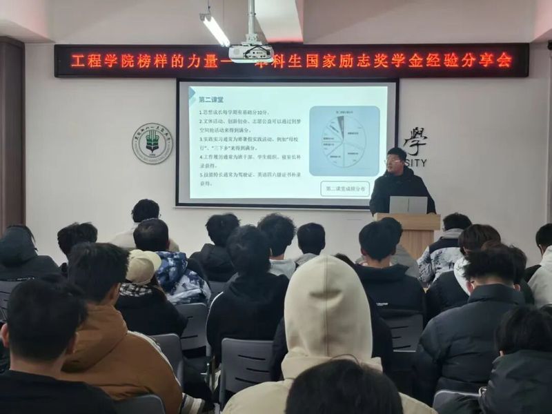 为发挥国家励志奖学金获得者的示范引领作用,帮助同学们明确成长方向、提升综合素养,11月16日,学院在学生公寓1—2号楼连廊举办“榜样的力量——国家励志奖学金获得者经验分享会”。本次分享会邀请到22级农业机械化及其自动化专业张鑫键等4名2024-2025学年国家励志奖学金获得者,分别从综合成绩提升、志愿服务实践、奖学金申请、心态保持四个维度分享心得。