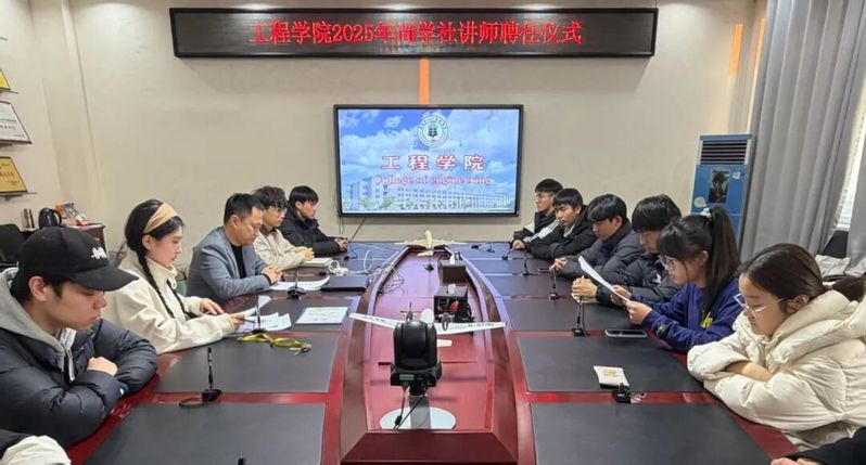 张欣欣宣读《工程学院尚学社讲师制度实施细则》,并对尚学社的讲师们的基本情况作了简要介绍。孙海宁为各位新任讲师颁发聘书。