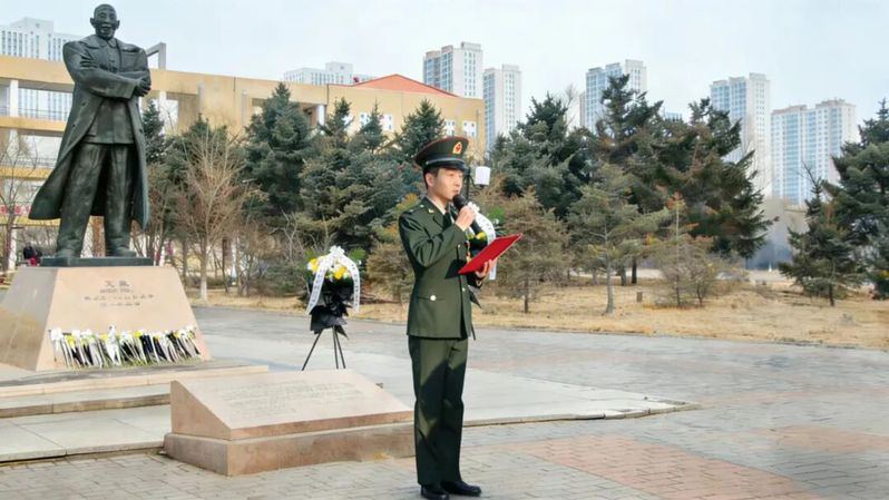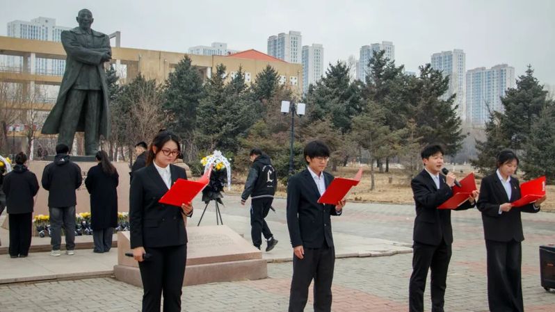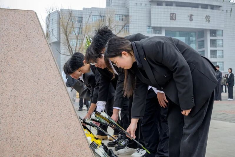 活动最后,教师与学生代表手持洁白鲜花,缓步走向王震将军雕像,依次将鲜花敬献于雕像前,表达对将军的深切缅怀与崇高敬意。献花仪式简洁而庄重,每一束鲜花都承载着师生们对英烈的追思,更寄托着传承北大荒精神、勇担时代使命的坚定决心。